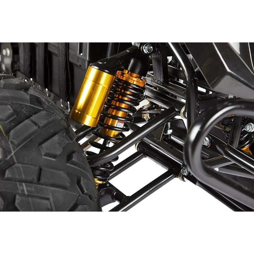 Колесная часть представлена размерами 19*7,0-R8 и 18*9.5-R8 переднее и заднее соответственно. При соблюдении требований производителя и безопасной эксплуатации гарантируют беспрепятственное преодоление лесных труднодоступных дорожек. Модель идеальная для охоты, рыбалки, вылазок с друзьями на природу. Езда по городской местности привлечет дополнительное внимание. Для покупки электроквадроцикла и оформления заказа предлагаем связаться с менеджером интернет-магазина.