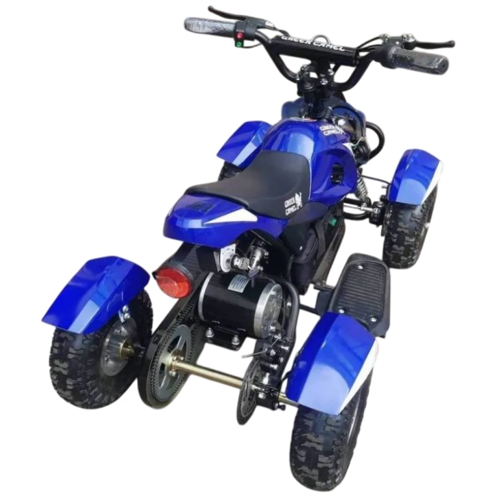 Модель рассчитана на юных райдеров начиная с 3-х летнего возраста с максимальным весом 60 кг. Электроквадроцикл оснащен надежным двигателем мощностью 350 Вт, позволяет достигать скоростных характеристик до 18 км/час. Гелевый АКБ рассчитан на 700 циклов заряд/разряд, что достаточно для преодоления расстояния до 15 км. Колесные диски и шасси с цепным приводом передачи предусмотрены производителем для повышенной комфортности и проходимости модели. Использование фирменных деталей при сборке обеспечивают абсолютную безопасность передвижения юного пользователя.