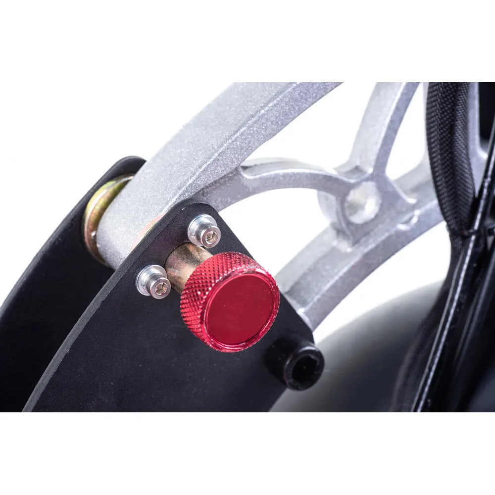 Управление движением осуществляется за счет специальной электронной панели на руле, где отображаются все необходимые данные (текущая скорость, длительность поездки, уровень заряда батареи). Торможение происходит путем рулевого управления.
