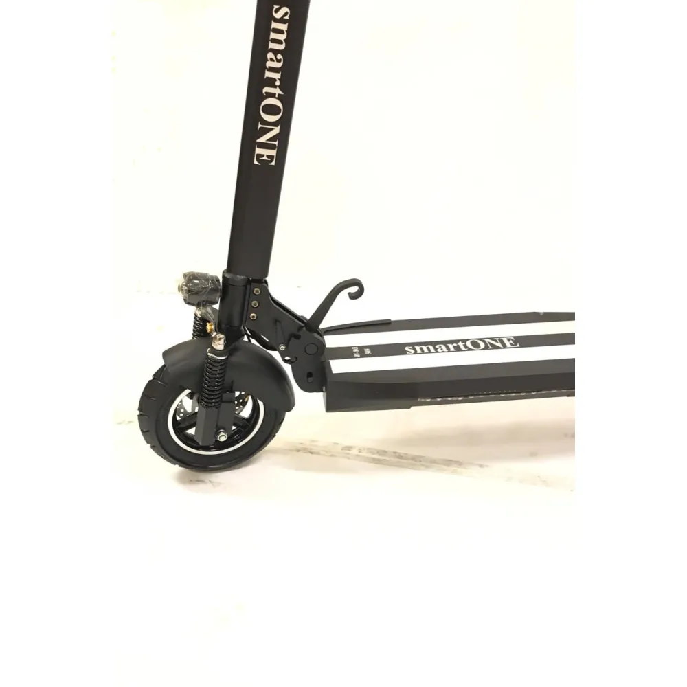 Самокат SmartOne MS-1 PRO оборудован колесами размером 10 дюймов, благодаря чему повышается проходимость агрегата. Плавности хода добавляют пружинные амортизаторы на переднем и заднем колесах. Электросамокат предназначен для городских, асфальтированных дорог, где он показывает лучшие результаты своих технических данных. Но также легко он преодолевает участки гравийных или грунтовых дорог.