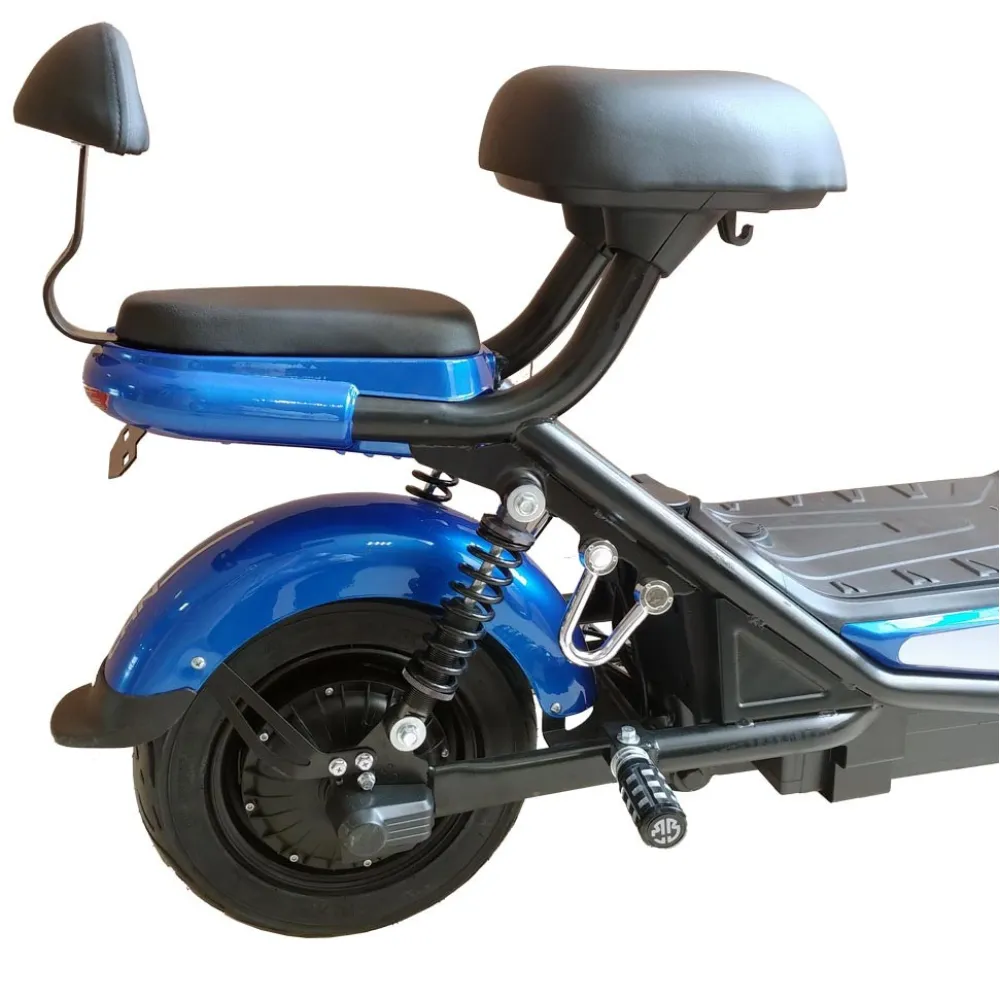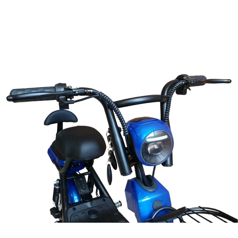 Удобное сидение с возможностью установки дополнительного делают поездки еще более комфортными. Бесколлекторный движок (500 Вт) при максимальной нагрузке в 150 кг с легкостью выдает 35 км/час. Батарея Lilon надежно зафиксирована под рамой для экономии полезного пространства. Емкость (20 Ач напряжение 48 В) АКБ позволяет пройти до 50 км на одном заряде. Дуэт из дисковых и барабанных механических тормозов обеспечивают полную защиту райдера на дороге. Вилка оборудована подвеской на амортизаторах для смягчения наезда на ямы и кочки. Малогабаритные размеры (1550*620*1050 см) и малый вес модели (55 кг) дает возможность пользователю прекрасно маневрировать в плотном городском потоке. Стальная рама имеет особую прочность материала. Корзинка на руле надежно закреплена и имеет хорошую вместительность. Райдер может совершать покупки и перевозить грузы с большим комфортом.