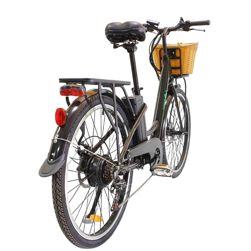 Электровелосипед Грин Кэммэл Бриз (R26 350 Вт 36V 10Ah), шестискоростной классически черный – шикарный городской круизер с высокими показателями комфорта. Предназначен для движения по ровной дороге и парковой зоны. Оснащен объемной передней корзиной, удобной для поездок за продуктами, на базар, вылазки. Приобрести супертехнику по разумной стоимости предлагает наш интернет-магазин.