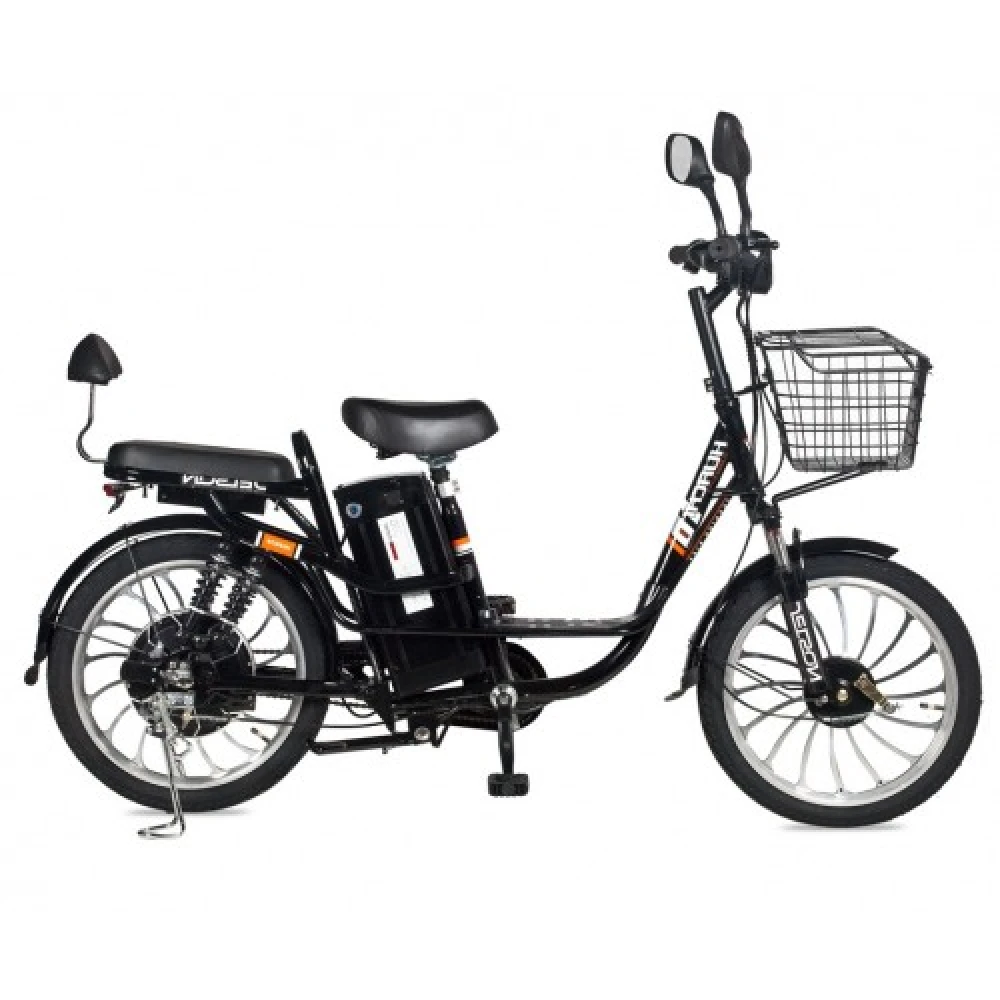 Электровелосипед оснащен двигателем мощностью 350 Вт, который вместе с литий-ионной батареей способны достигать скорости до 40 км/час и преодолевать 50 км пути. Увеличить пробег можно посредство перехода на режим педалирования. Батарея размещена в специальном блоке за подседельной частью, быстро съемная. Время полной подзарядки – 7 часов.