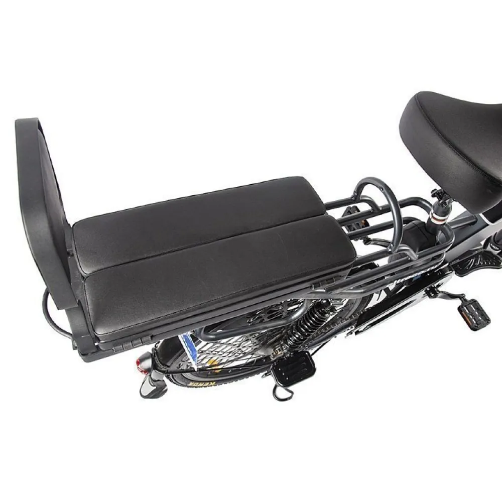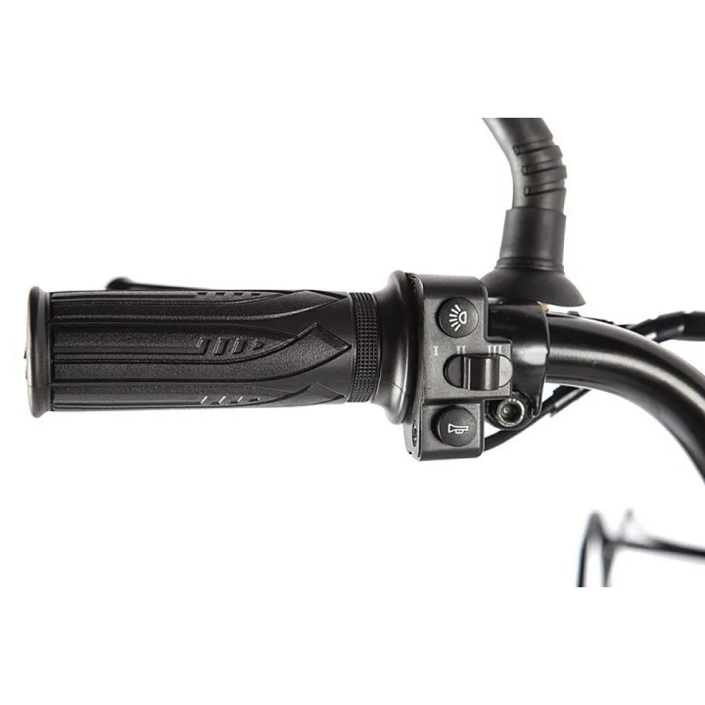 Мощность двигателя 500 W, очень шустрый, практически бесшумный, легко набирает скорость до 50 км в час, маневренный даже в населенном пункте, по городским улицам, а дисковые гидравлические тормоза мгновенно справляются со своей основной задачей. Сам имеет массу 39 кг, легко можно перевозить в багажнике, хранить в подвале, на балконе, в небольших гаражных помещениях.